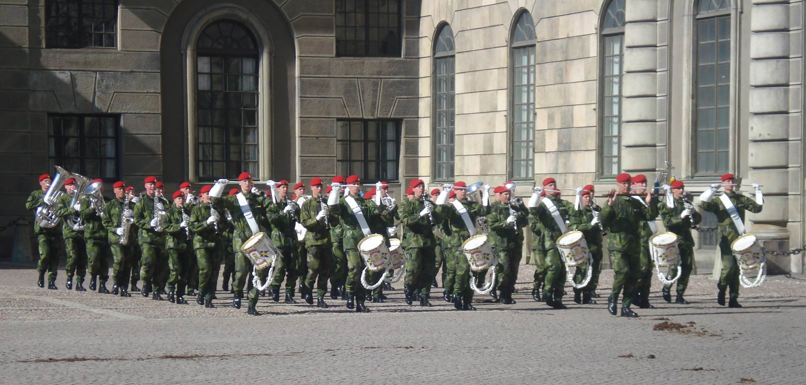 A military band drilling outside the palace