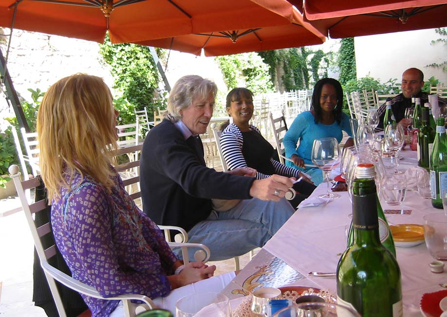 Laurie, Roger, Katie, Pat and Simon at lunch near Verona. Roger is counting the ballot papers.